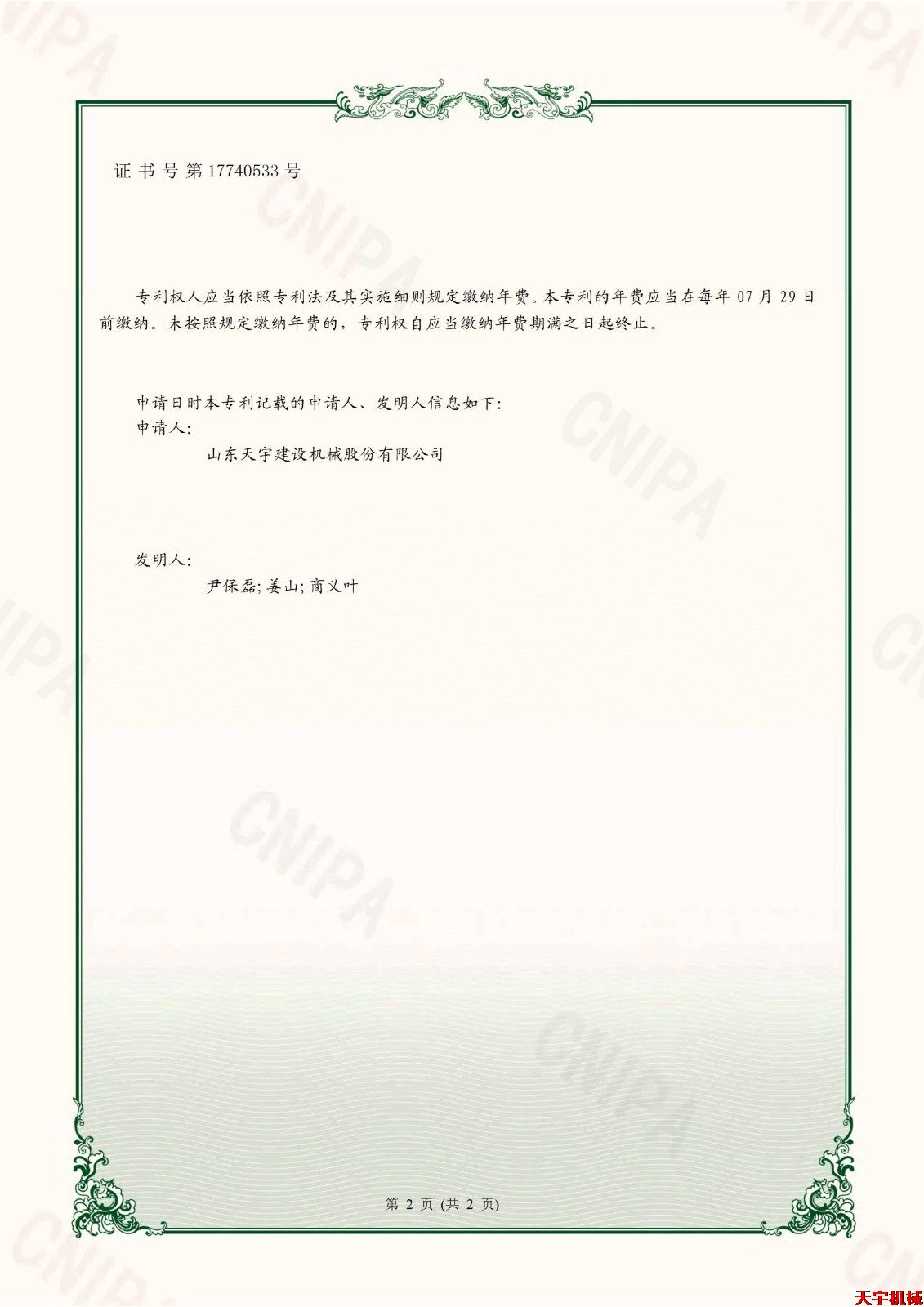 专利证书