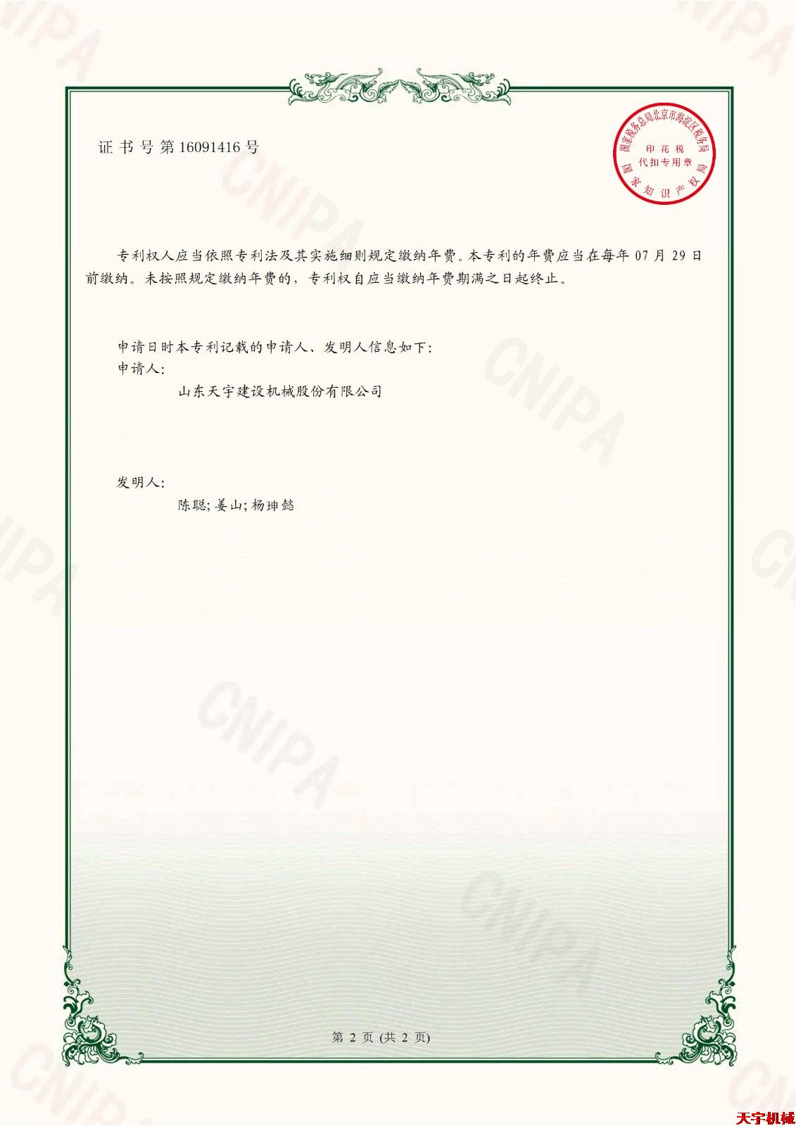 专利证书