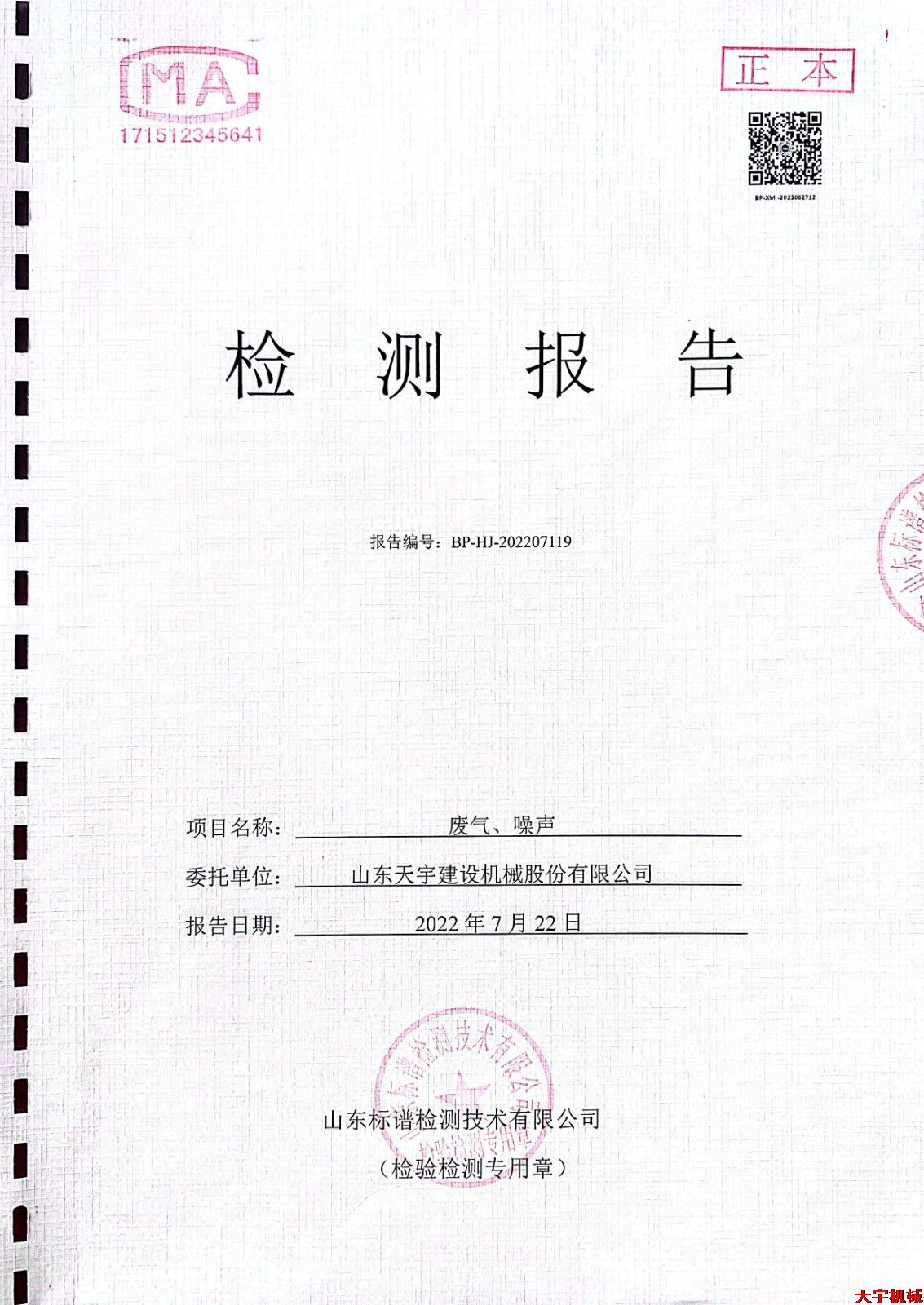 山东天宇建设机械股份有限公司废气、噪声检测报告公示