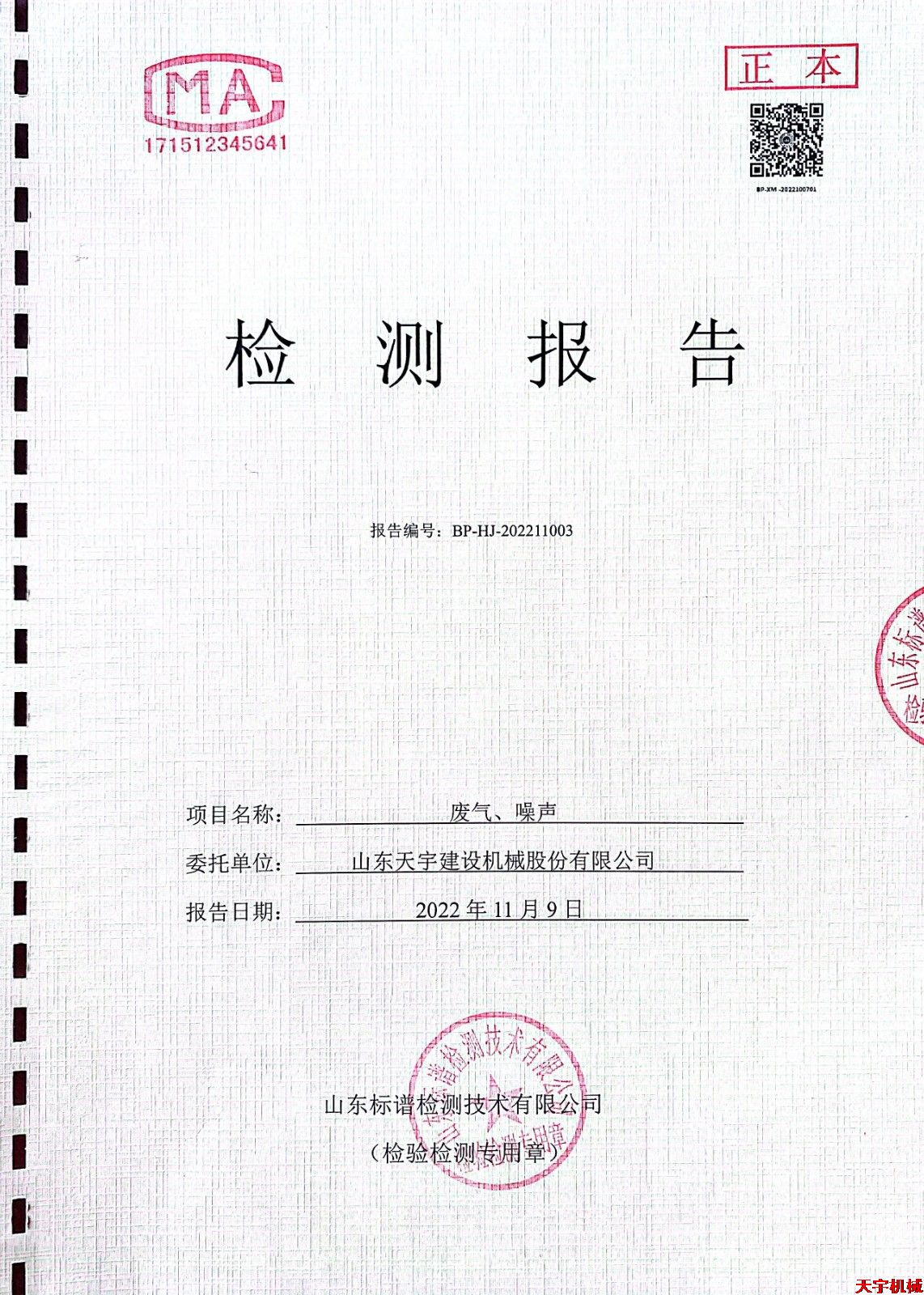 山东天宇建设机械股份有限公司废气、噪声检测报告公示