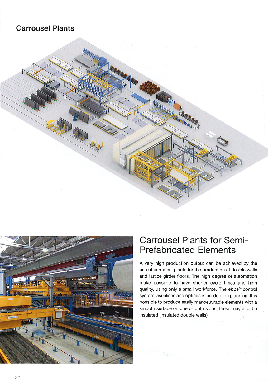 通过使用卡鲁塞尔工厂的双层墙和格子梁地板的生产线可以实现高产出。自动化的高精确度的运用,只需要很少